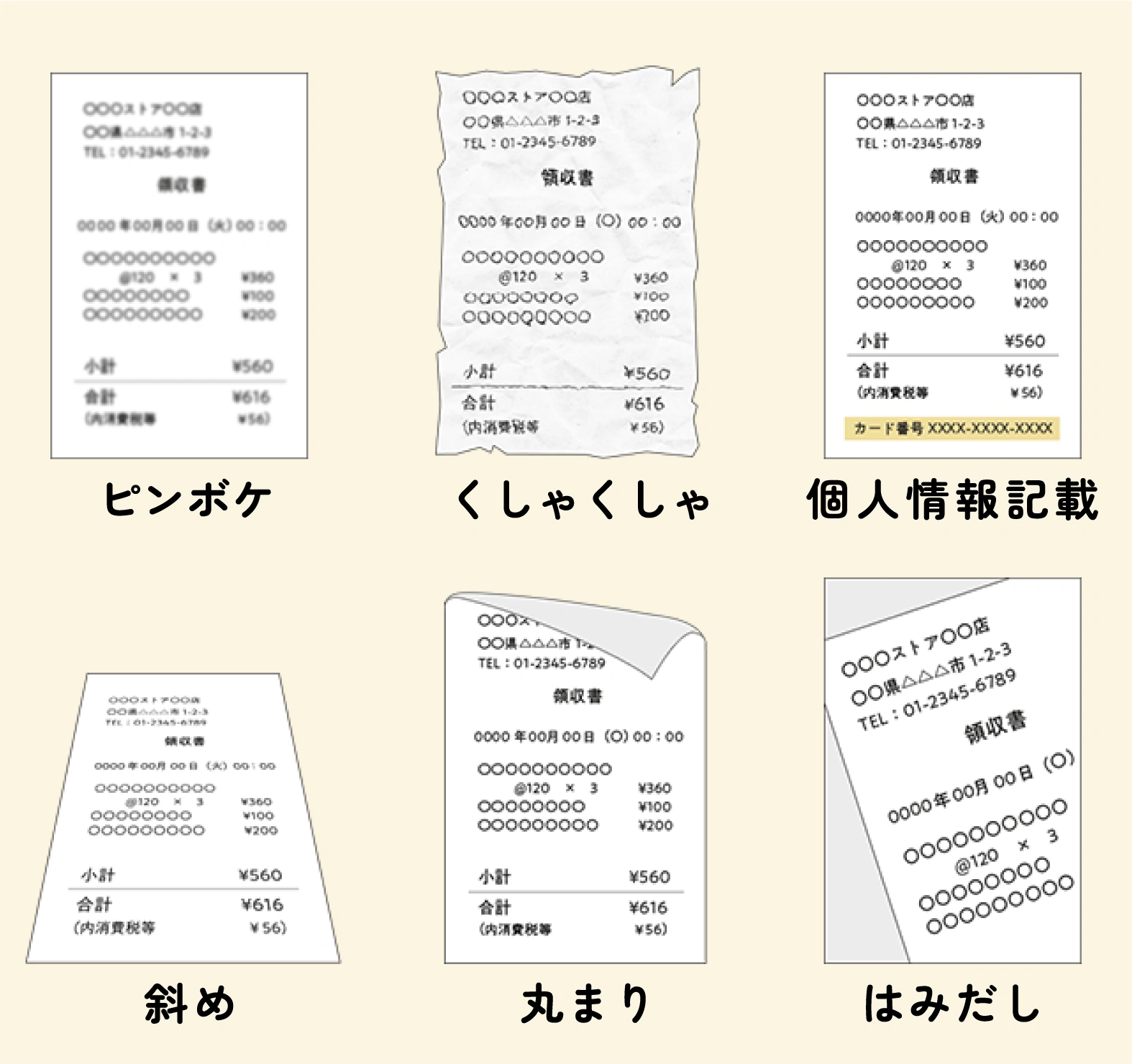 - ・レシート画像が不明瞭な場合