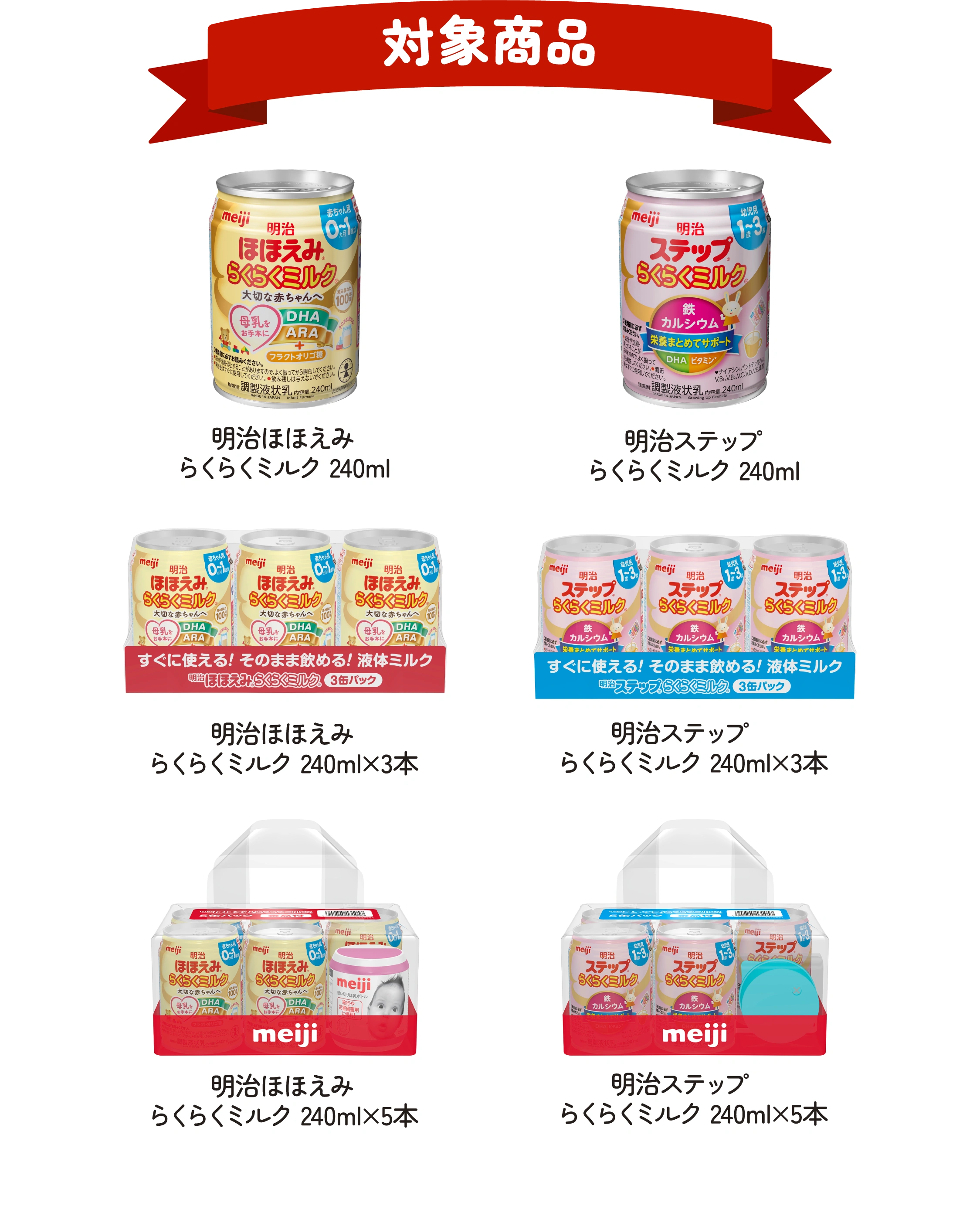 - ※明治ほほえみ及び明治ステップのらくらくミルク以外の商品は対象外です。