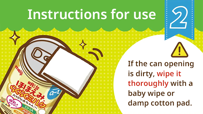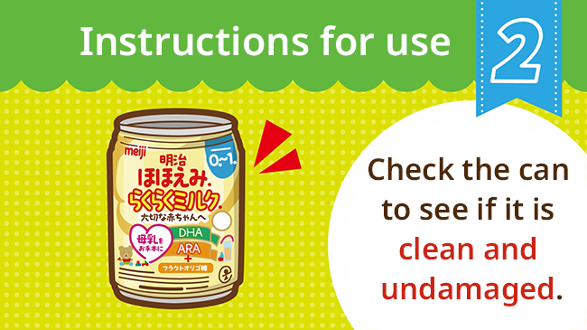 - Your baby should not drink RakuRaku Milk straight out of the can because they may cut their lips.