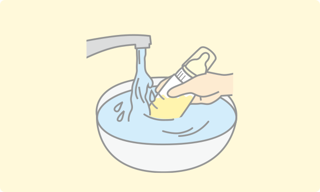 清洗用具并消毒※1。煮沸消毒时,将水加入至能没过用具,水沸腾后煮5~10分钟(奶嘴煮3分钟)※1 也可用蒸汽除菌或药水消毒。