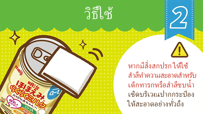 - ควรเปิดฝาหลังเขย่ากระป๋องให้เข้ากัน แล้วเทใส่ในภาชนะที่สะอาดและให้ทารกดื่ม