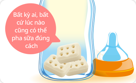 Không cần đong sữa bằng thìa, chỉ cần cho viên sữa trong gói vào bình sữa. Không còn lo pha quá lượng sữa hay bột sữa rơi vãi!