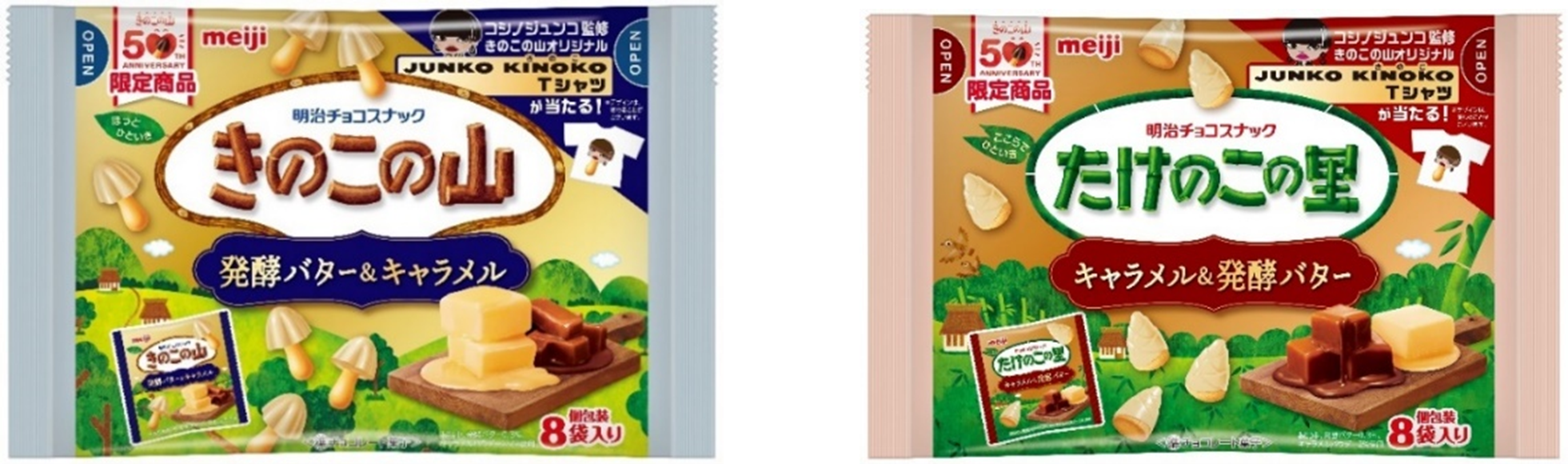 株式会社 明治(代表取締役社長:八尾 文二郎)は、グローバルブランドを目指す「きのこの山」「たけのこの里」より、世界的デザイナーのコシノジュンコ氏とのコラボ企画で誕生した「きのこの山発酵バター&キャラメル」「たけのこの里キャラメル&発酵バター」を2025年10月14日から全国で期間限定にて発売します。