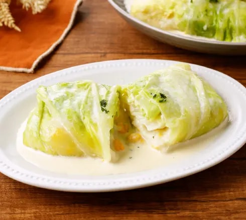 - キャベツがやわらかくなるまで茹でて芯を削ぎ落とす。