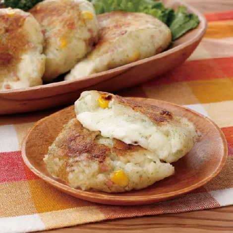 <1>じゃがいもは皮を剥いて適当な大きさに切り、中火で竹串が刺さるまで茹でてボウルに移し、熱いうちにフォークで潰す。