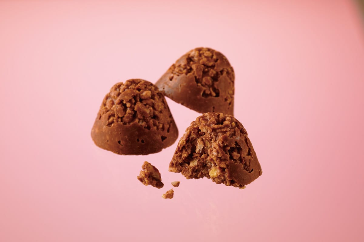 このようにクランチチョコには、食感のある素材や副材料、チョコレートの種類、形状といった複数の要素の掛け算で、豊富な種類ができあがります。
