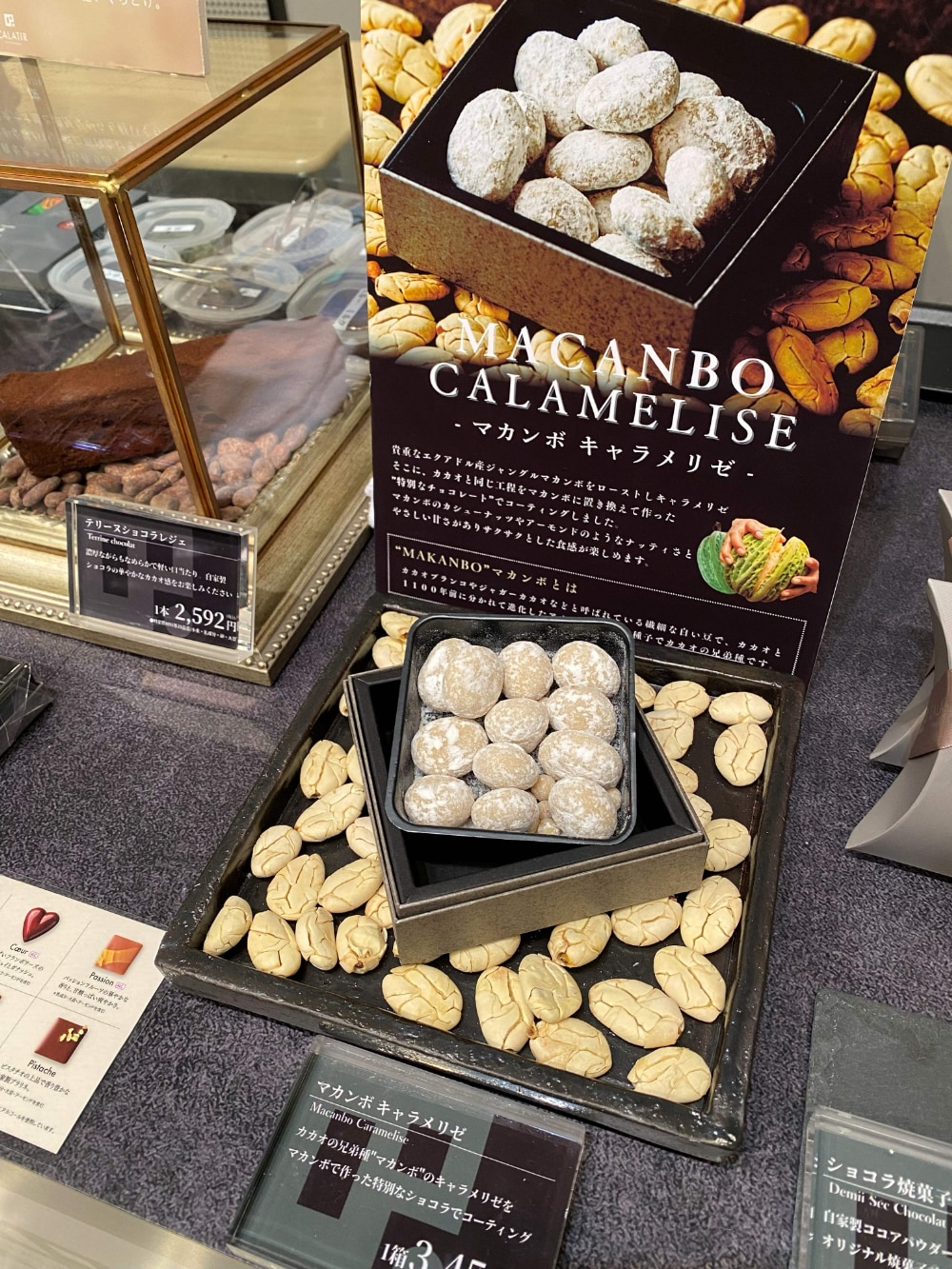 ひとつはマカンボを扱うブランドがいくつかあり、思わず足を止めました。マカンボはカカオの親戚とも言われるナッツで同じテオブロマ属、カカオのシェードツリーにもなる植物です。日頃なかなか口にすることがないこうした商品に出会えるのは新しい体験。サクサクとした食感で、食べるとカシュ―ナッツのような風味が感じられます。今年は、マカンボを使ったチョコレートが、「ママノチョコレート」や「カラティール」、「Tatsunori Sato(タツノリサトウ)」にも並んでいました。