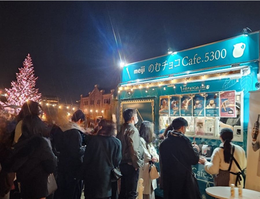 のむチョコの魅力を多くの方にお伝えするために、のむチョコCafé.5300は、日ごろから様々なイベントに出向いて、本格的なチョコレートドリンク(のむチョコ)を提供しています。季節に合わせたメニュー展開で、皆様にカカオの香りと幸せな時間をお届けしています。