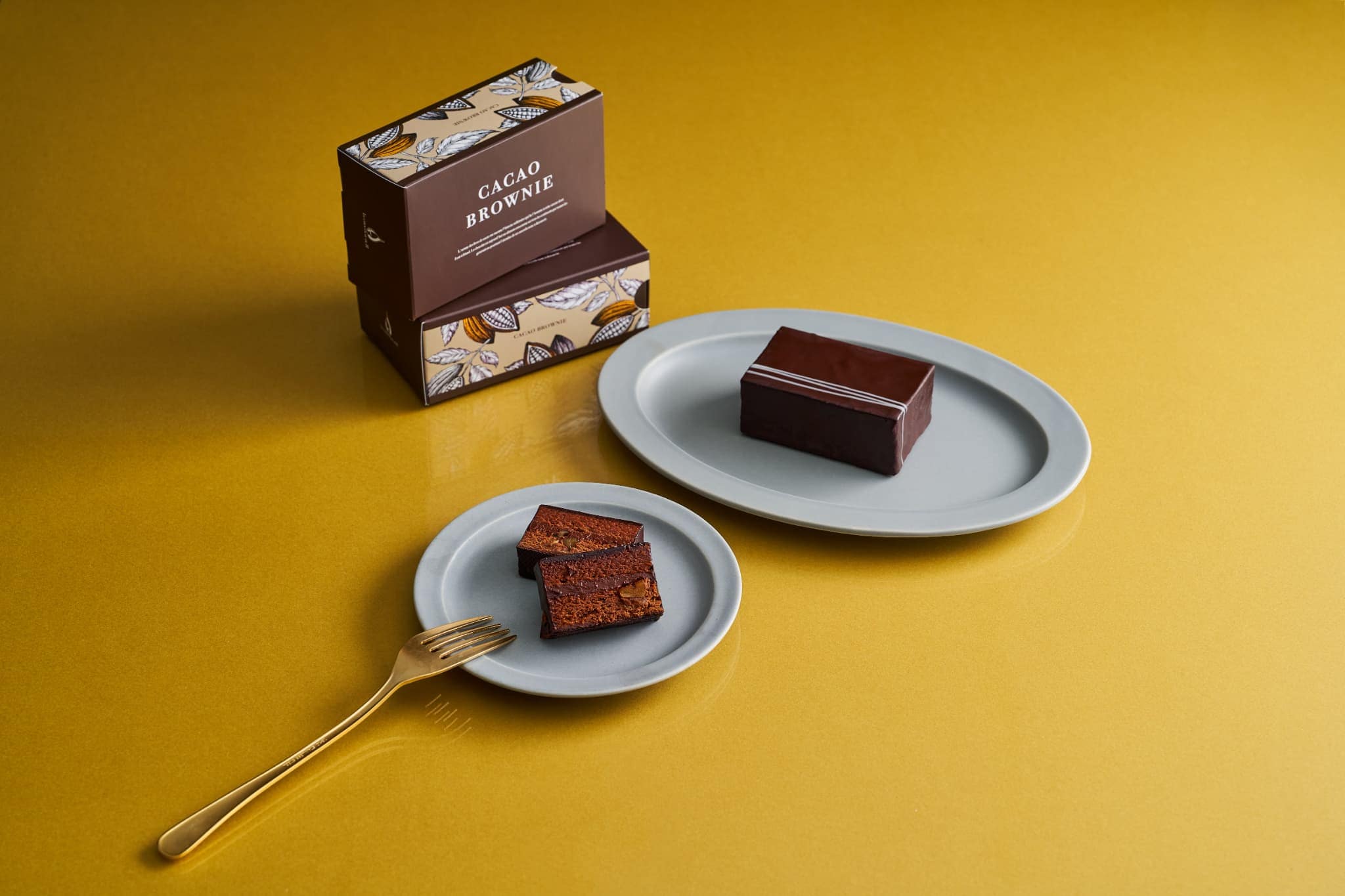 メキシコホワイトカカオを贅沢に使ったブラウニー生地にホワイトカカオのガナッシュをサンドし、ショコラノワールでコーティングしたブラウニー。エアリーでムースのような食感のスフレブラウニーを作り、通常のブラウニーにはないような軽やかな口溶けを表現しました。