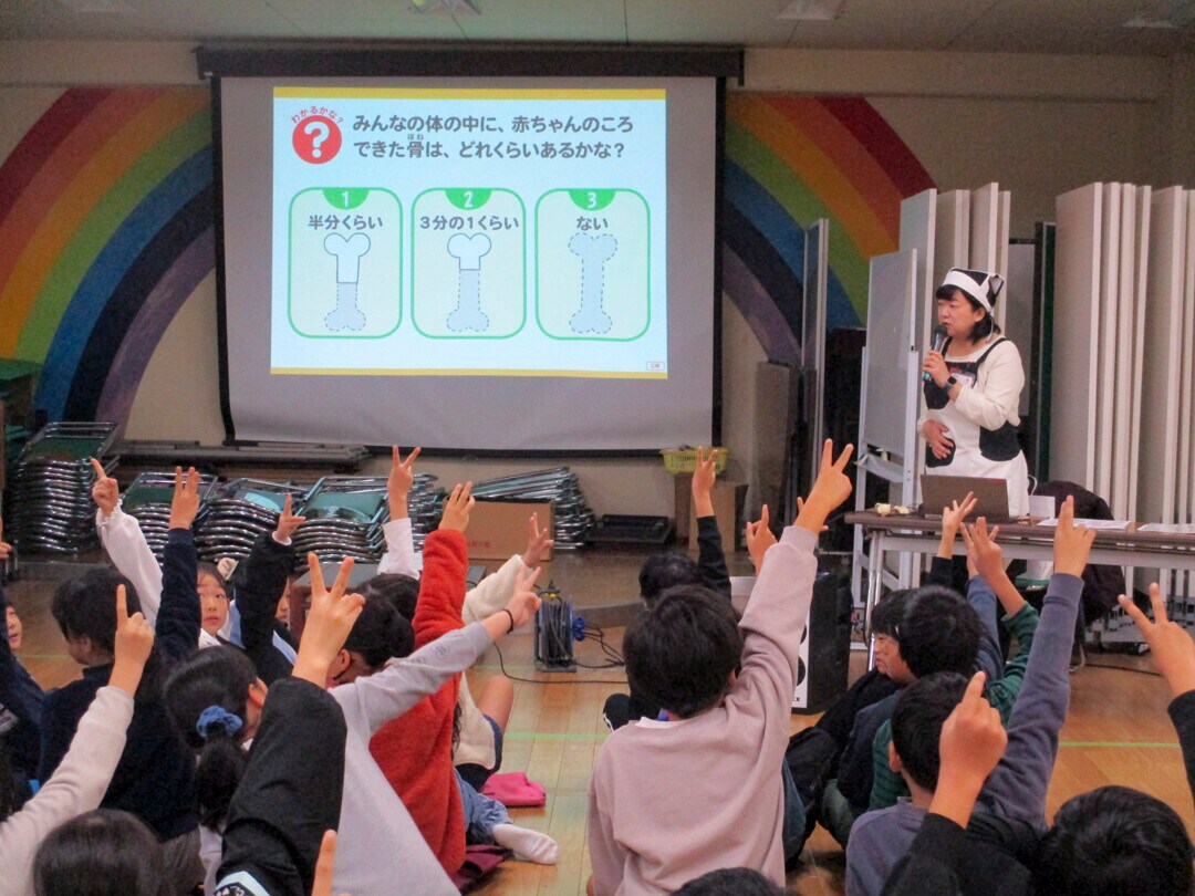 成長期、特に10歳前後の子どもたちにぴったりの内容だと思います。今回の授業で、骨の役割や骨貯金をすることの大切さ、骨を強くするにはどのようにしたらよいか等を学ぶことができました。授業後は牛乳が苦手な子も頑張って飲もうとする姿が見られ、みるく教室を通して自分の生活を見直すきっかけになったと思います。