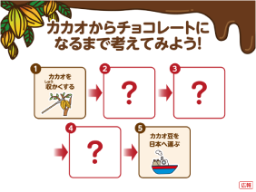 「チョコレート」という身近な食品を通じて、自然の恵みやカカオ農家の仕事、国際協力について楽しく考えるプログラムです。