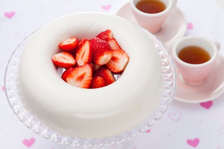 - 固まった4)を器に返して盛り、いちごを添えます。