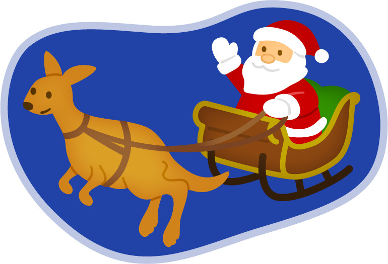 南半球に位置しているため、クリスマスは真夏にやってきます。真夏のクリスマスということもあり、サンタクロースはソリを使用せずカヌーやボート、サーフボードに乗って登場することもあるそうです。また、トナカイの代わりにオーストラリアのシンボルであるカンガルーがソリをひくという設定が絵本や歌で親しまれているようです。