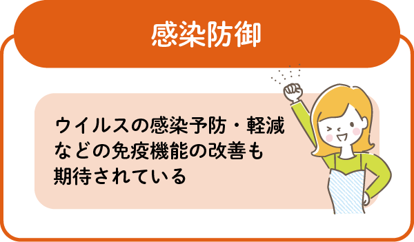 プロバイオティクスは、ウイルスの感染予防や軽減などの免疫機能の改善も期待され、研究が行われています。インフルエンザやロタウイルス下痢症についての動物実験やヒト試験の結果が報告されています*13。
