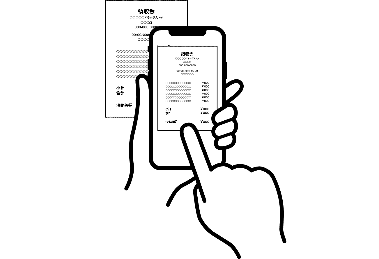 - ※レシートに商品名が記載されていない場合は、該当する金額の部分を○で囲って撮影してください。