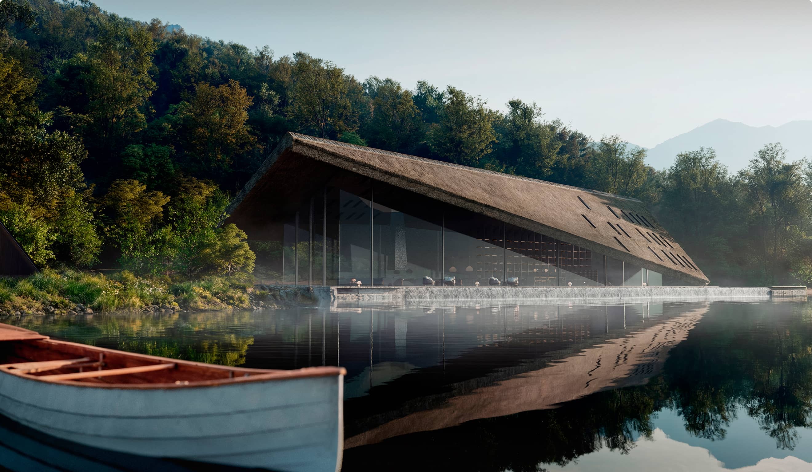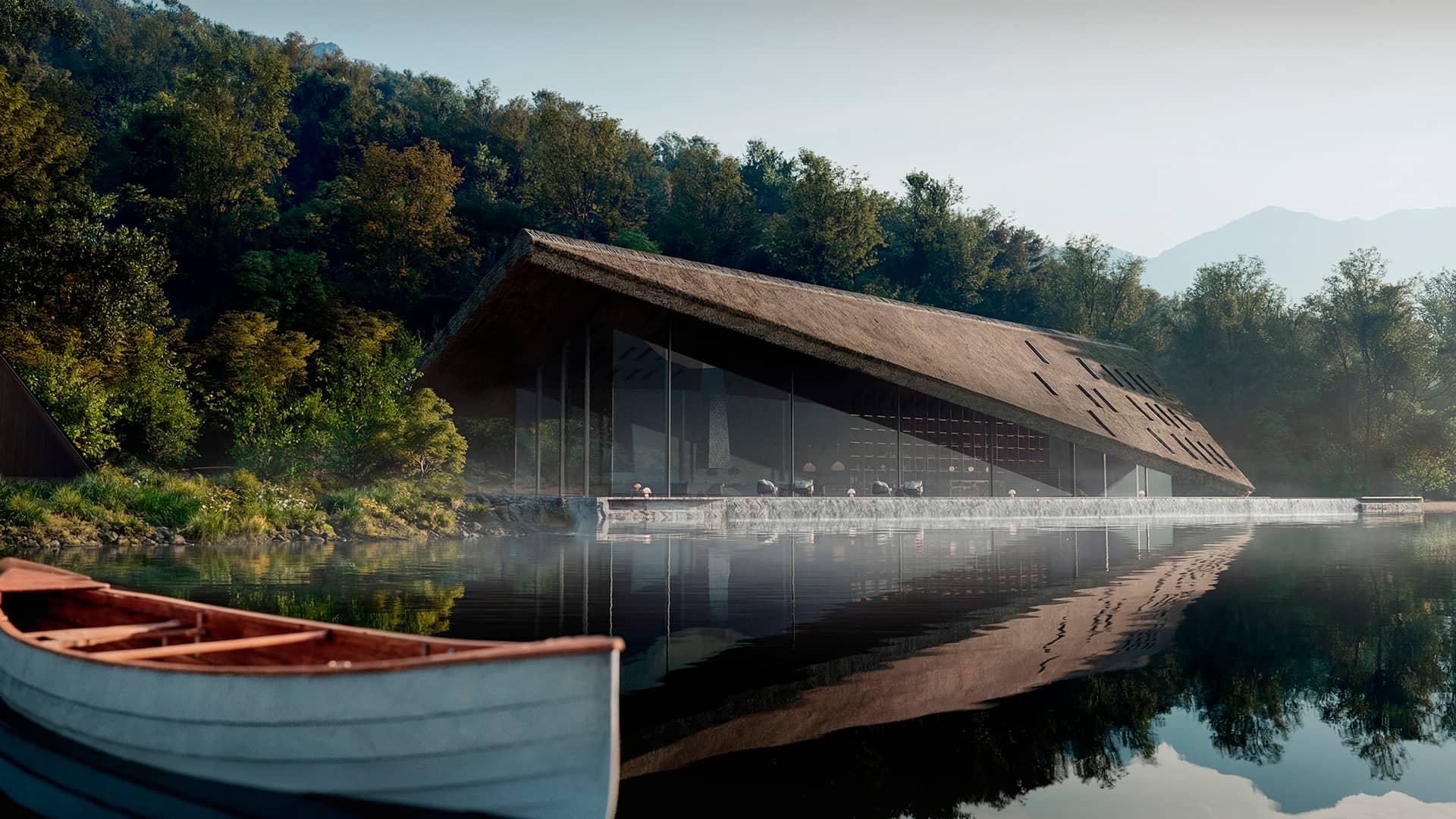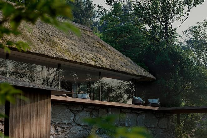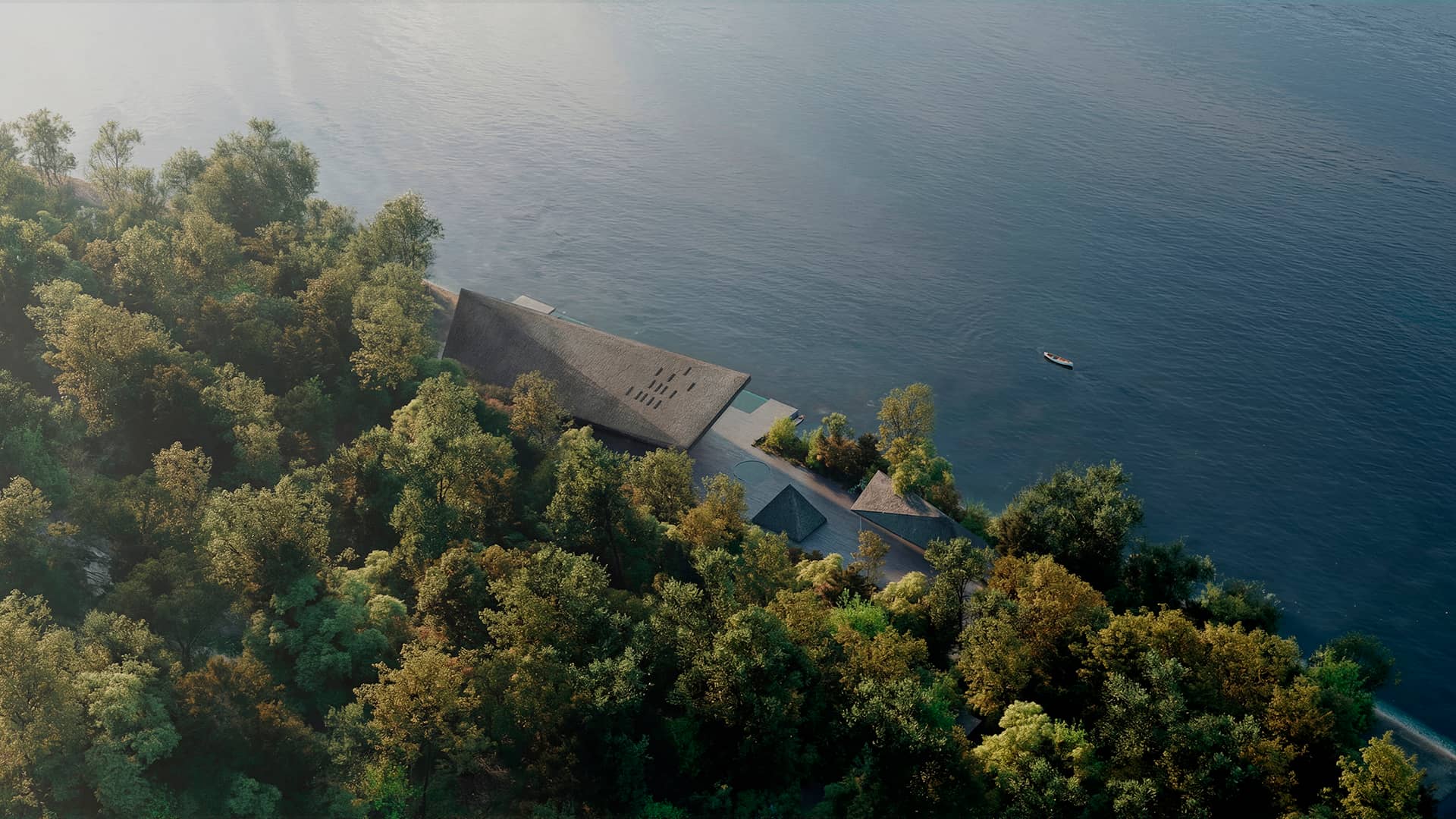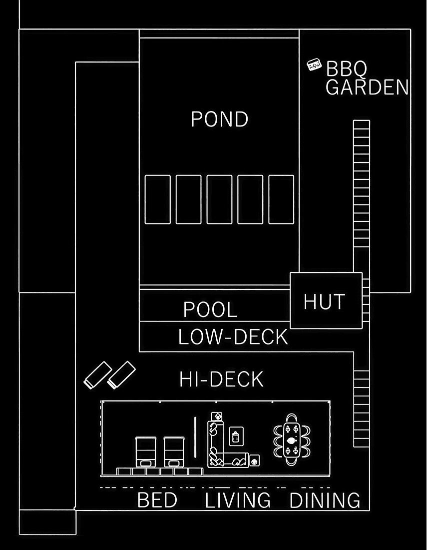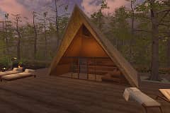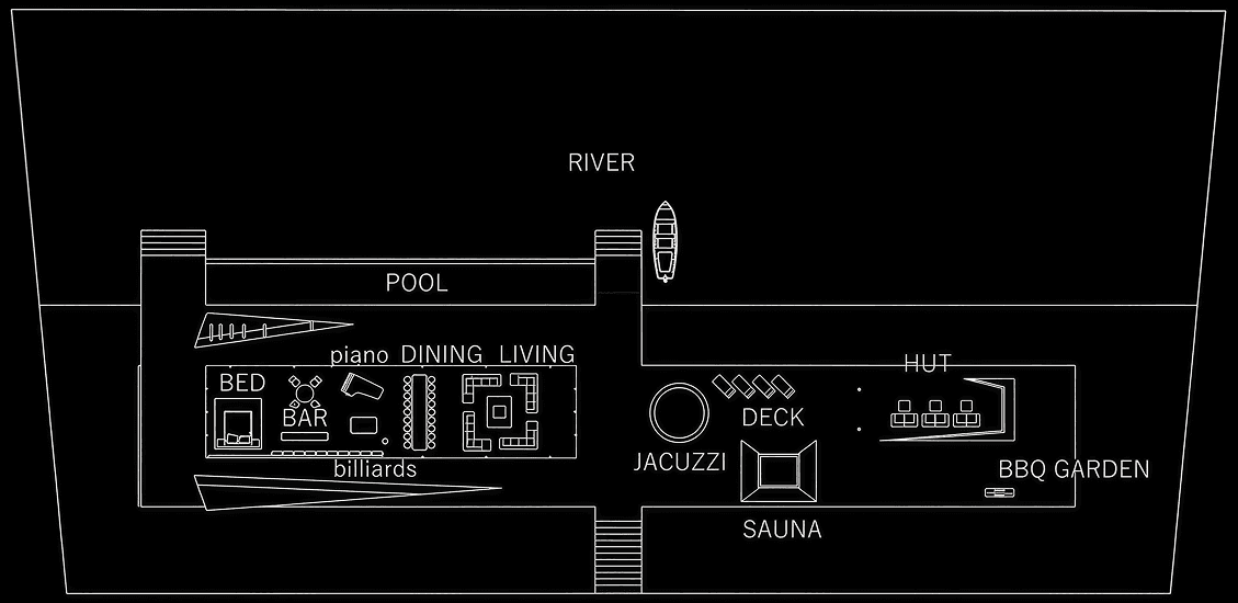 森の深淵に佇むプールや小屋は、