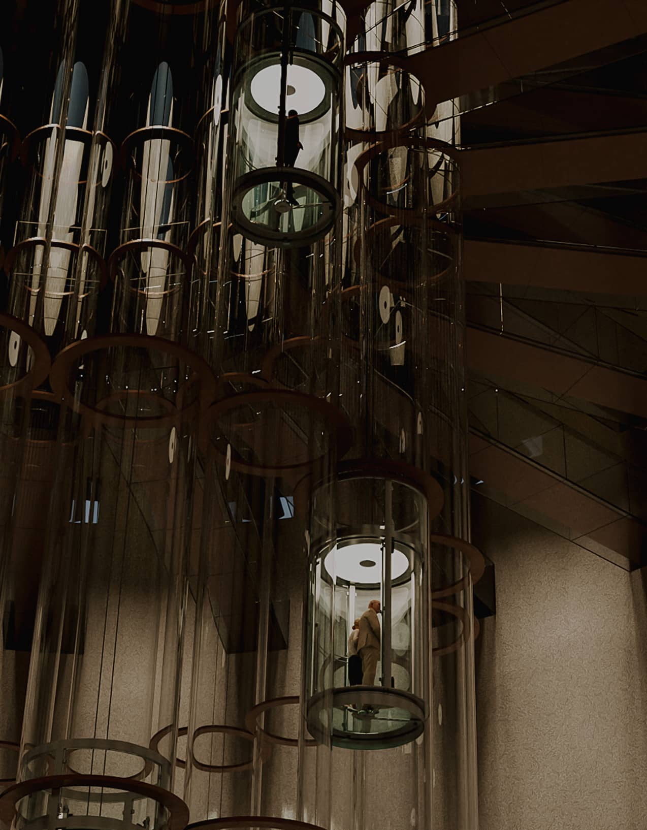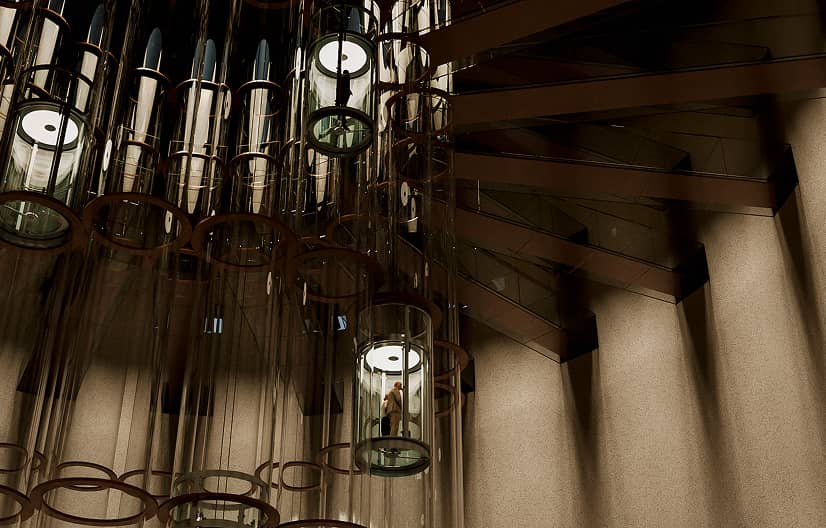 雲上の邸宅へと一気に翔け上がるエレベーター。