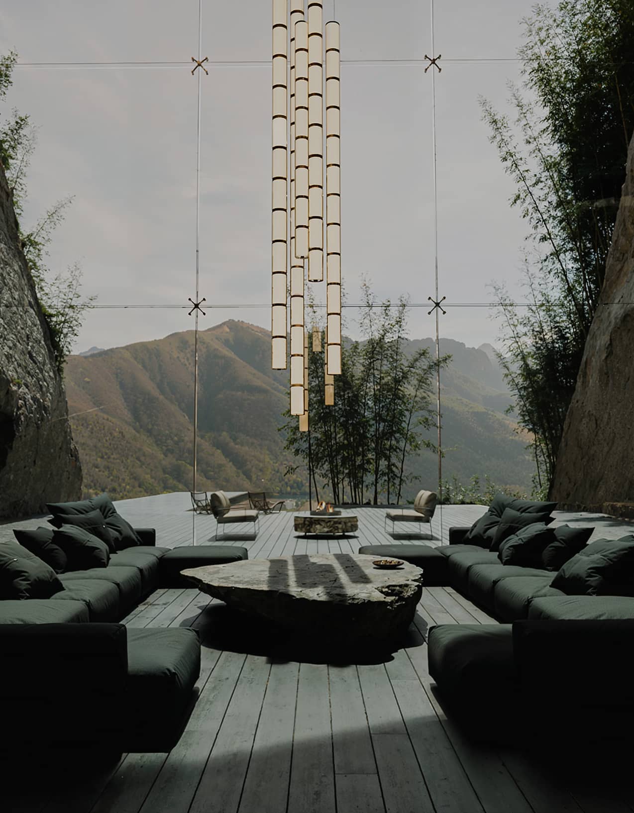 竹をモチーフにしたシャンデリアや、