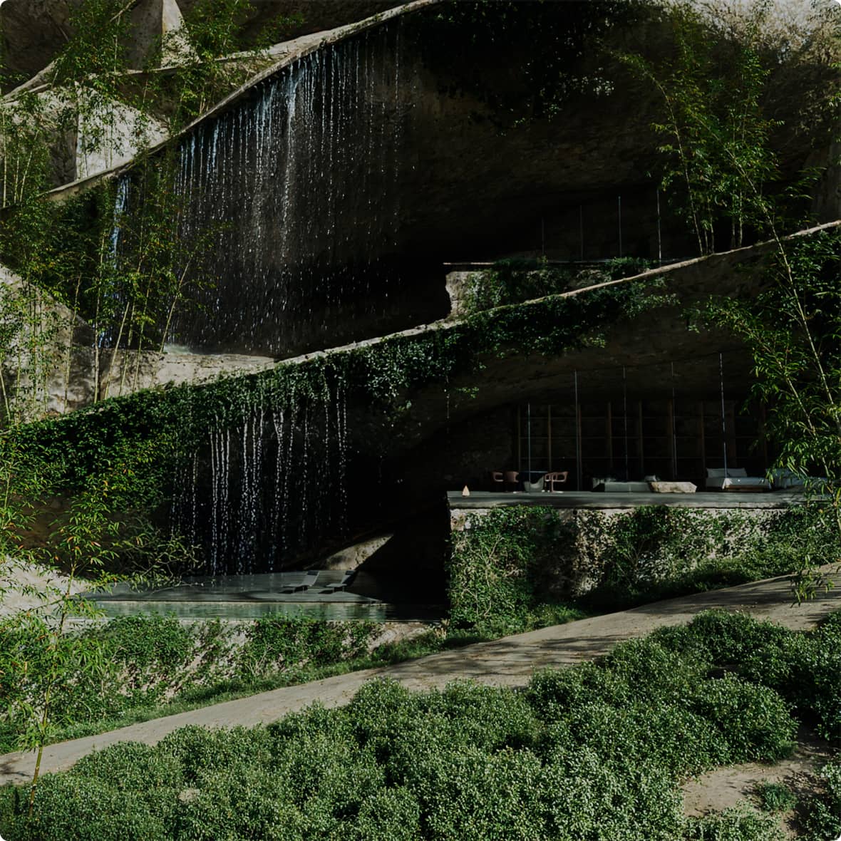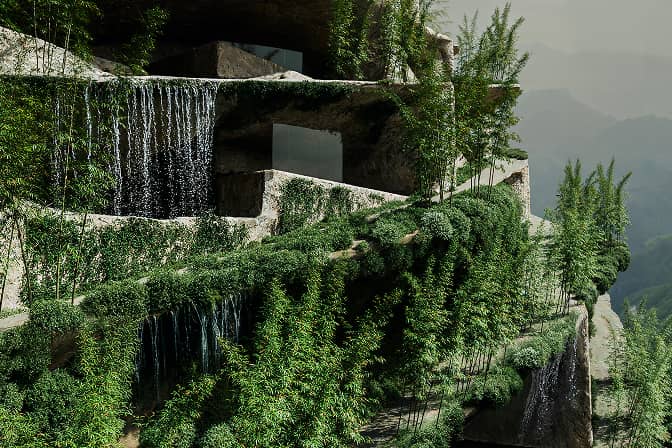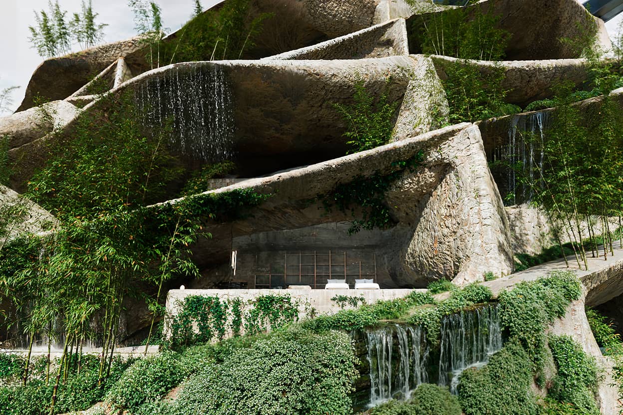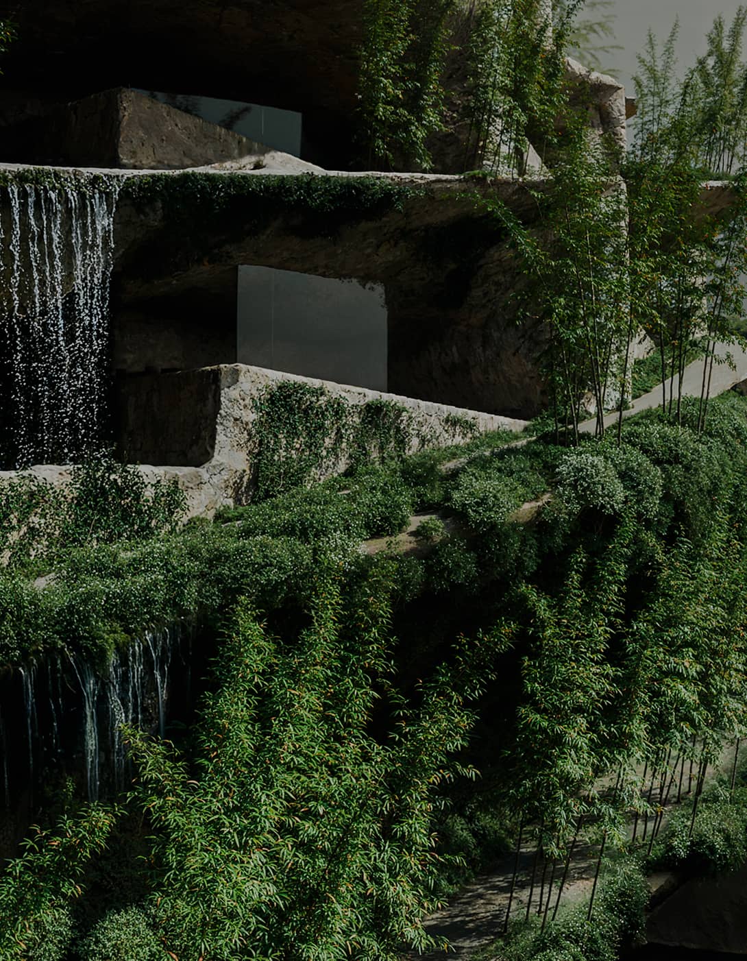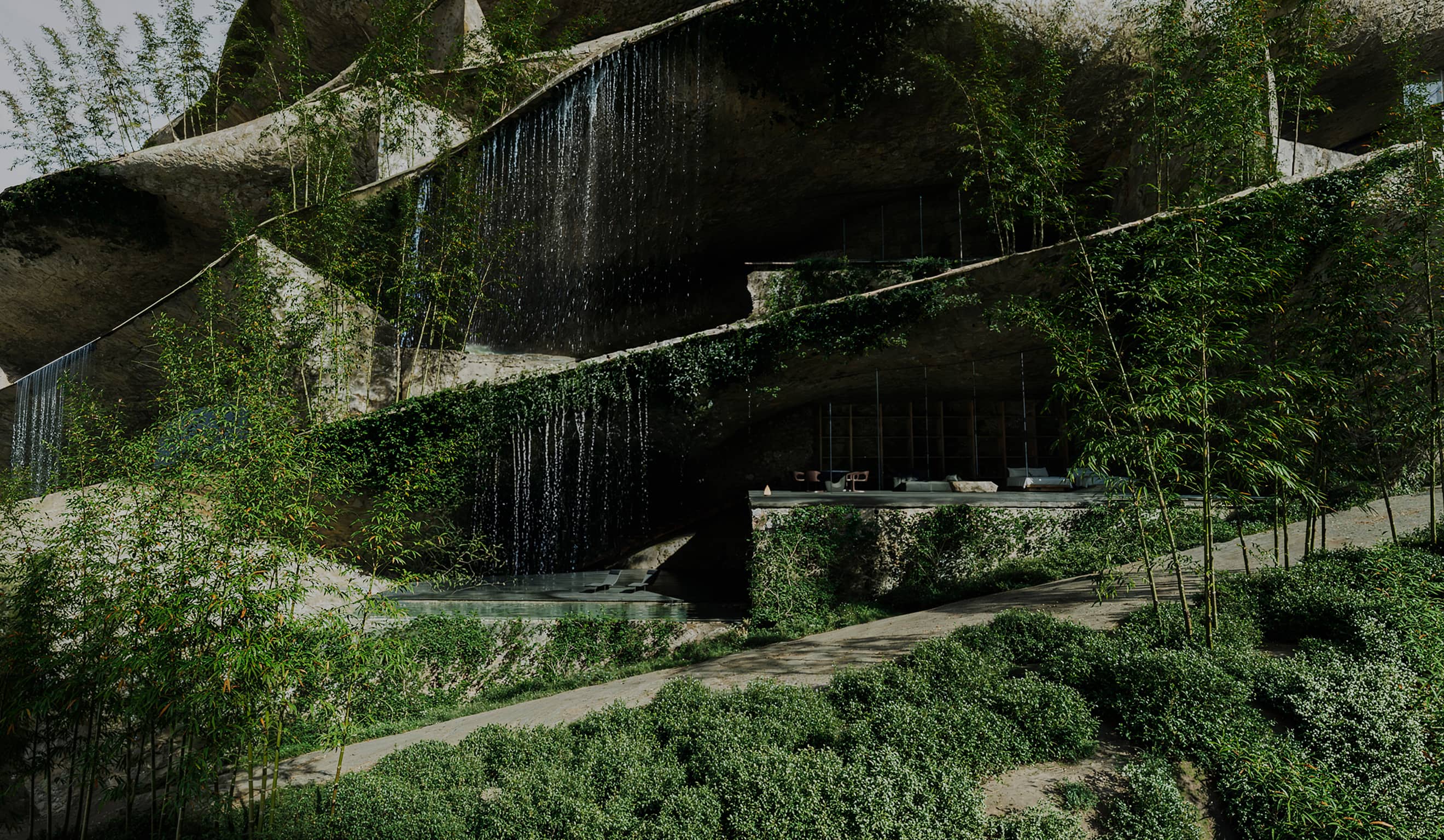 滝と竹林に抱かれた