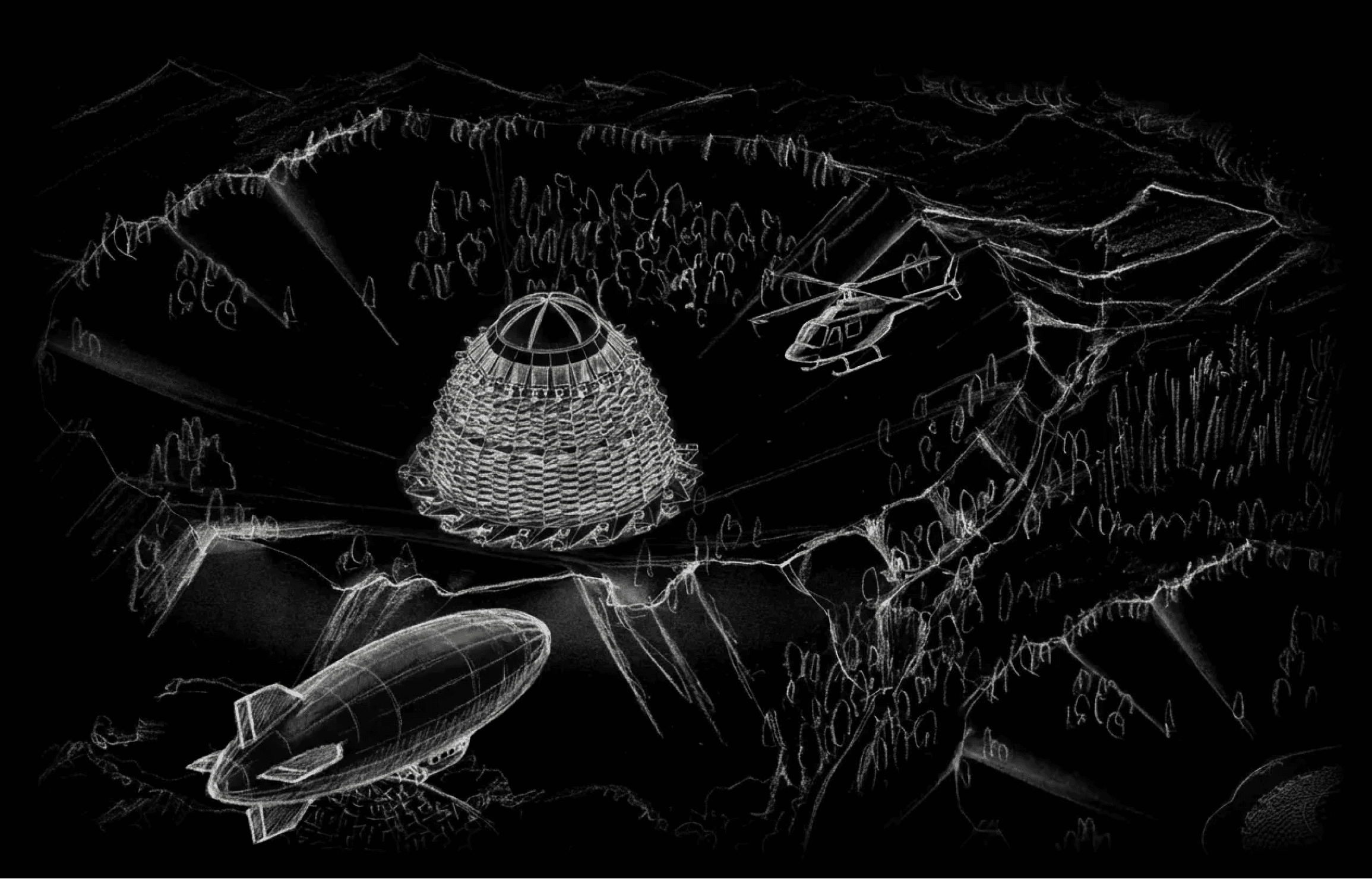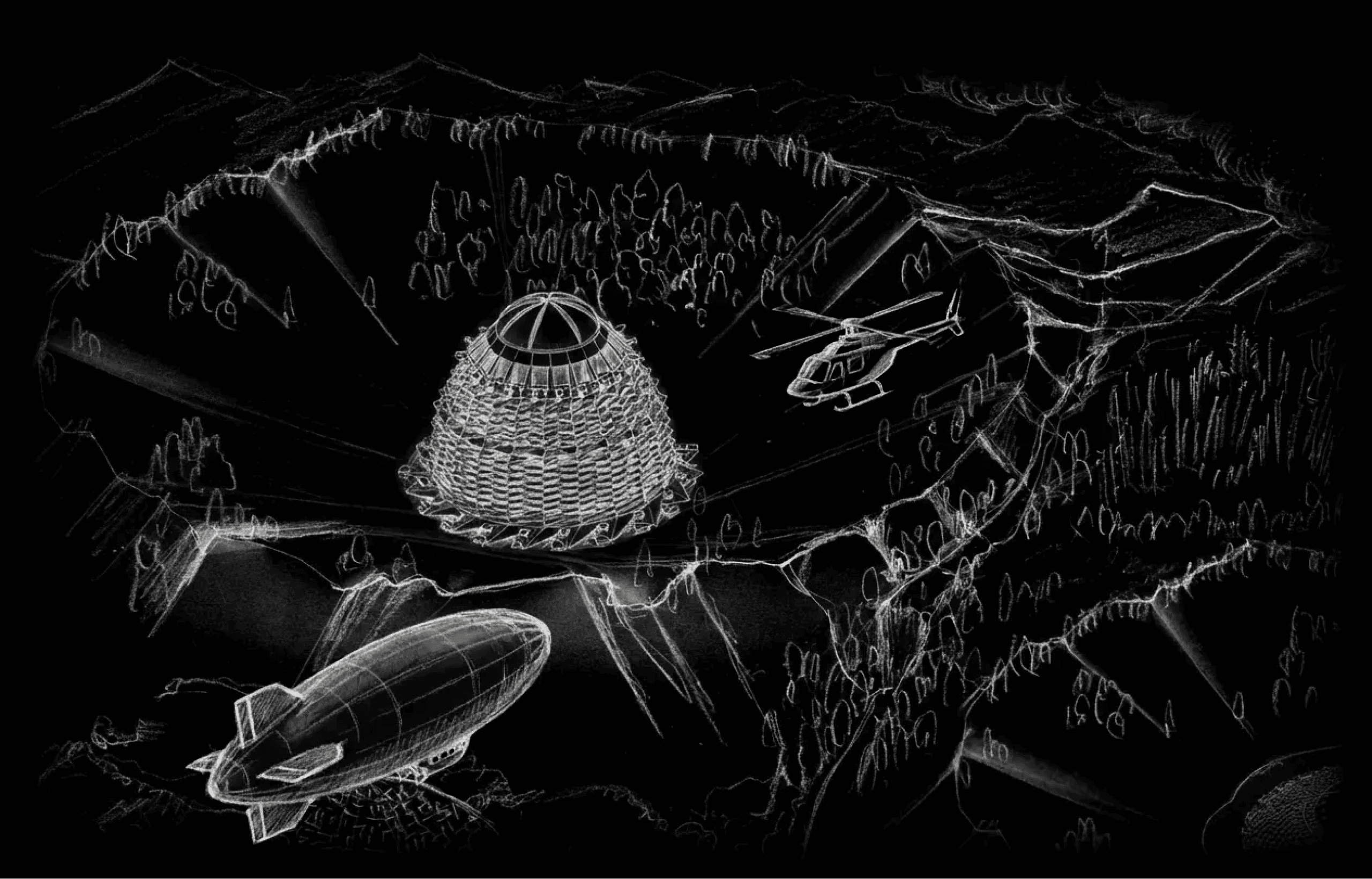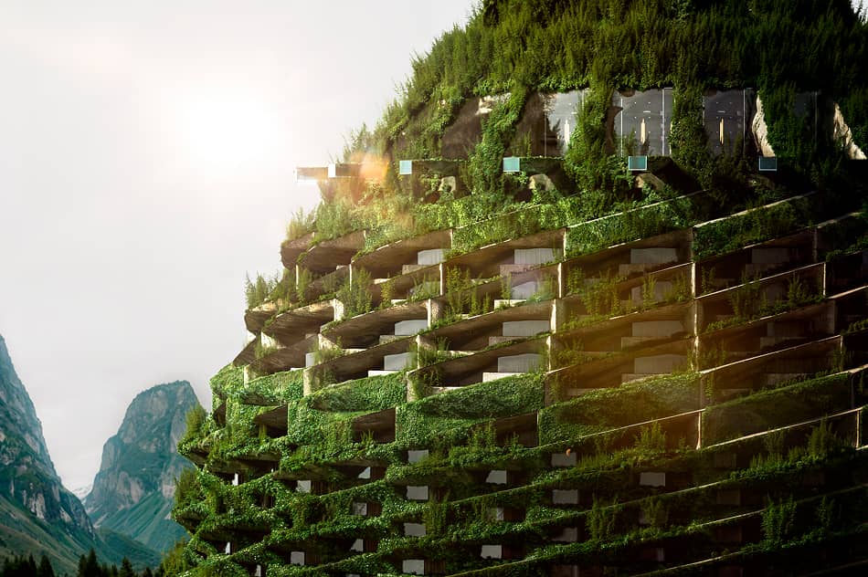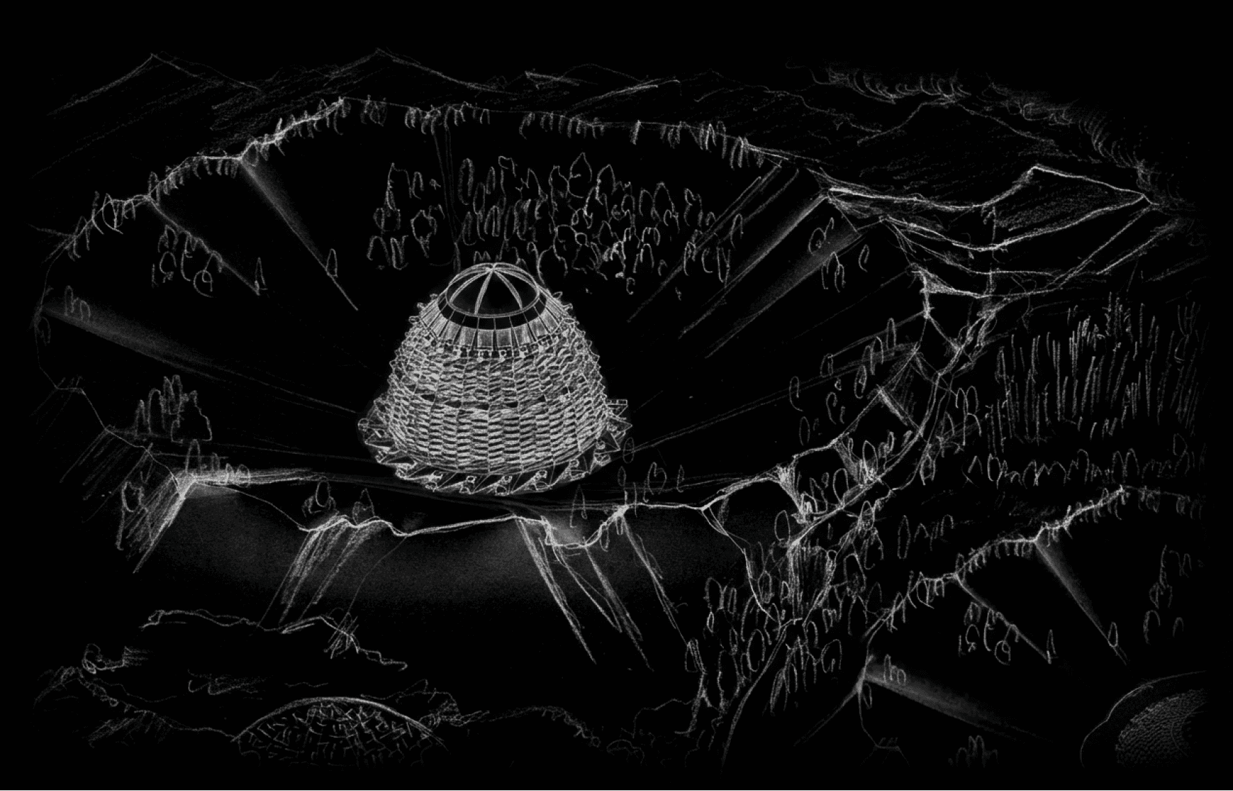 再現した天空へと伸びる建築。