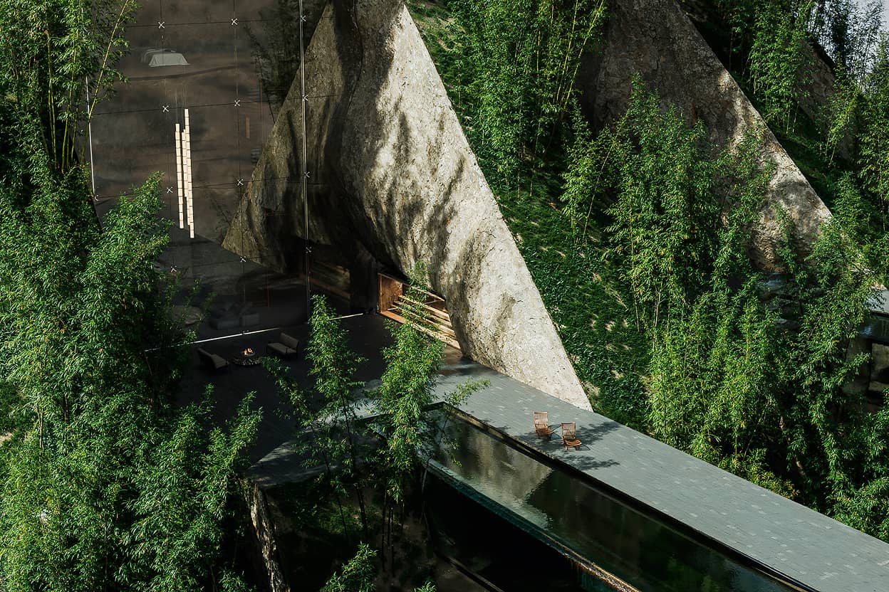 高く聳える岩をくり抜いたかのような