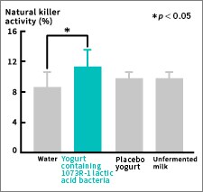 Yogurt containing 1073R-1 lactic acid bacteria increased NK activity.