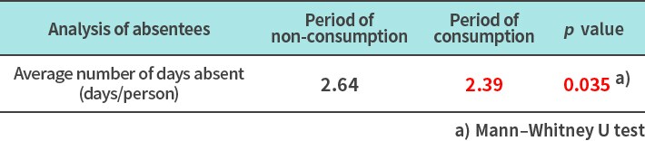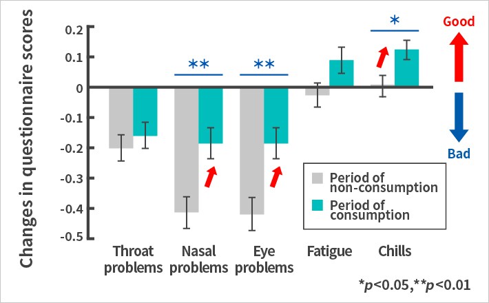 Results of questionnaire on physical conditions (comparison between periods of consumption and non-consumption)