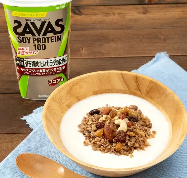 ・「ザバス ソイプロテイン100」は、明治が実施したアスリートの食事調査結果に基づき、アスリートのカラダづくりに必要とされるビタミンを独自に設計して配合しています。