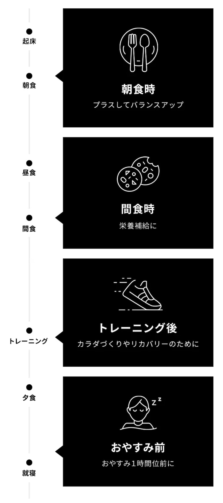 - カラダづくりやリカバリーのため、運動後に