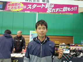 初めてウルトラマラソンに挑戦する方も、しっかり完走するためにスーパーヴァームを購入し、「頑張ります」と笑顔を見せてくれました!中には、明治ランナー応援セットを既に3セット用意してきたという方の姿も!また、5回目のレース出場となるスーパーヴァームランナーズのメンバーにもお会いできました!