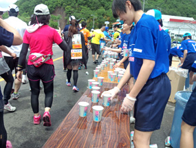 19日(日)のレース当日は、走る前にスーパーヴァーム顆粒の試供品を飲み忘れないように声掛けを行いましたが、参加賞からスーパーヴァーム顆粒を取り出して「ちゃんと飲んでスタートするよ」と合図を送ってくれる方がたくさんいました。また、給水地点ではヴァームウォーターでランナーをサポート。