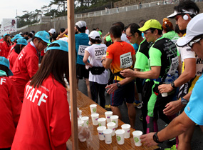 給水では「ヴァームウォータークリアアップル」で、ランナーの皆さんの走りをサポートしました。「給水所でヴァームウォーターがあってよかった」「さっぱりしていて飲みやすい」など、多くの嬉しいお声も頂きました。