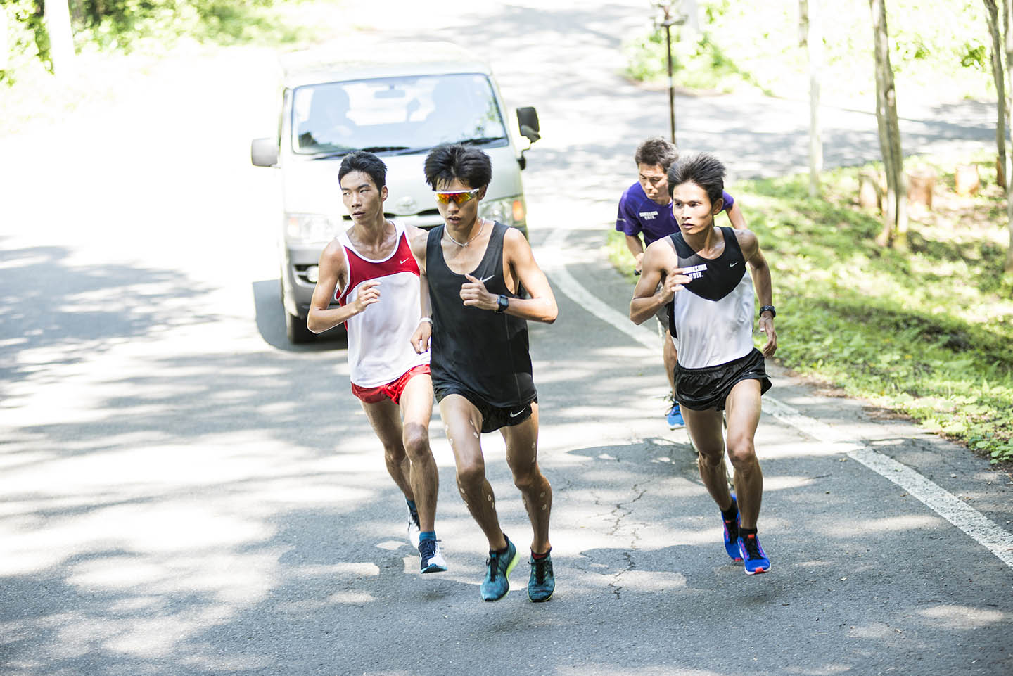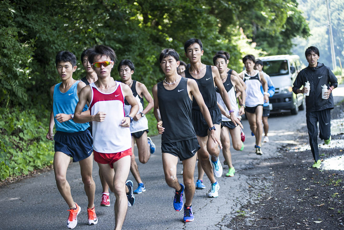 「練習中に一番気を付けるのは、水分の摂り方です。距離走をやると途中で脱水症状を起こして力が入らなくなったりするので、この時期はコースの途中でこまめに水分補給をさせています。練習前も含めてしっかり水分を摂っておくと、後半になっても力がまだ残っている。練習後に水分を摂れるくらいの余力が残っていると、翌日にもいい影響があります。汗をかく量は選手によって全然違いますから、一律に決めるのではなく、選手ごとに対処しています」