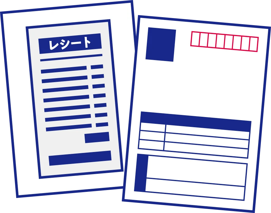 - ・クレジットカードや電子マネーでお支払いの場合は、レシートに印字されているお客さま情報部分を塗りつぶしてアップロードしてください。
