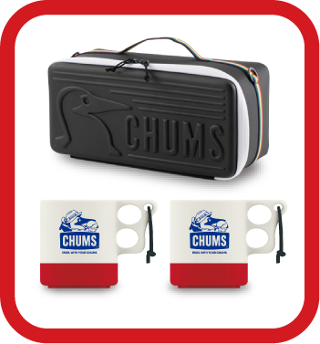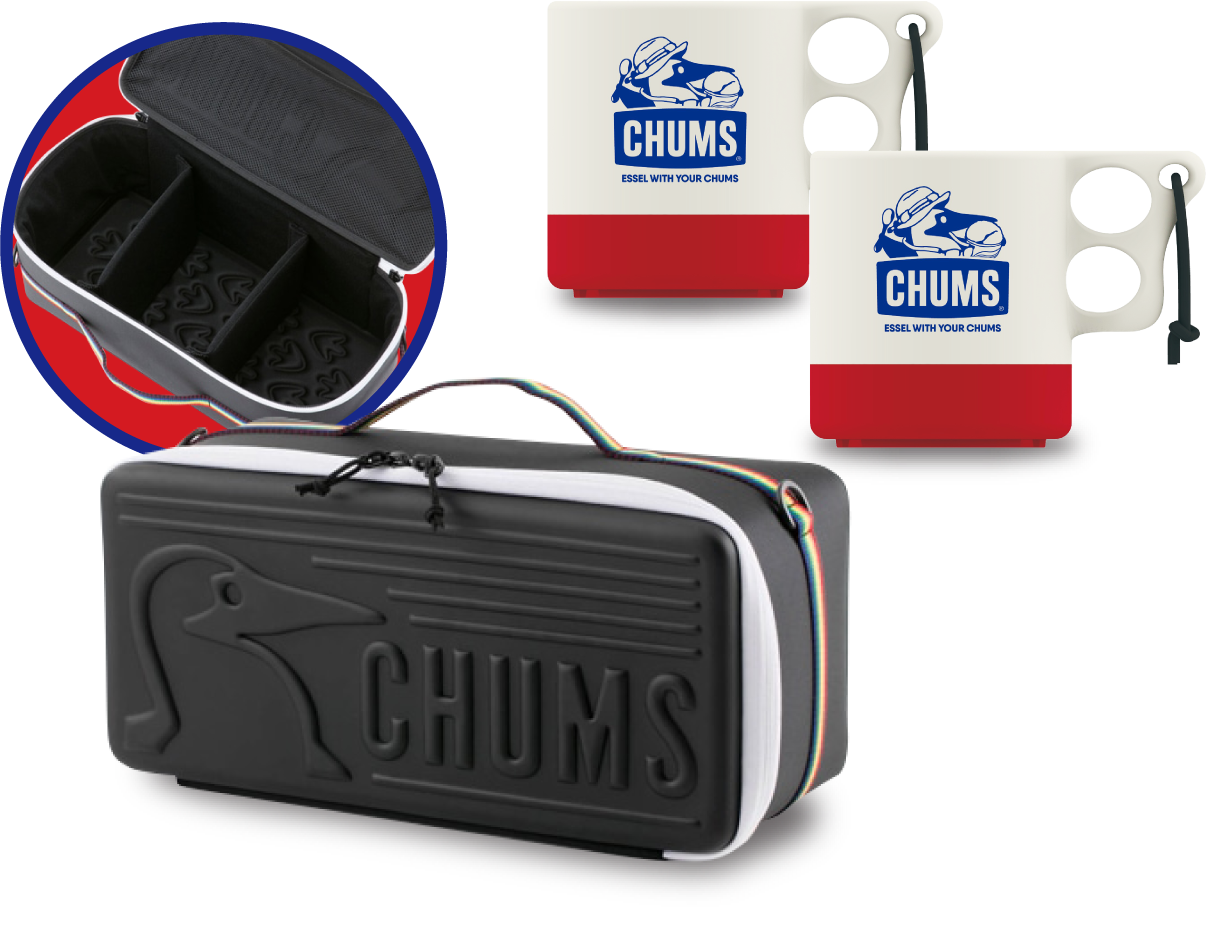 衝撃から中身を守ってくれる!大切な小物収納に最適な、耐久性の高いハードケースと、軽くて割れにくい、CHUMS定番のキャンパーマグカップ!安定性抜群の2つ穴の持ち手が特徴的です。